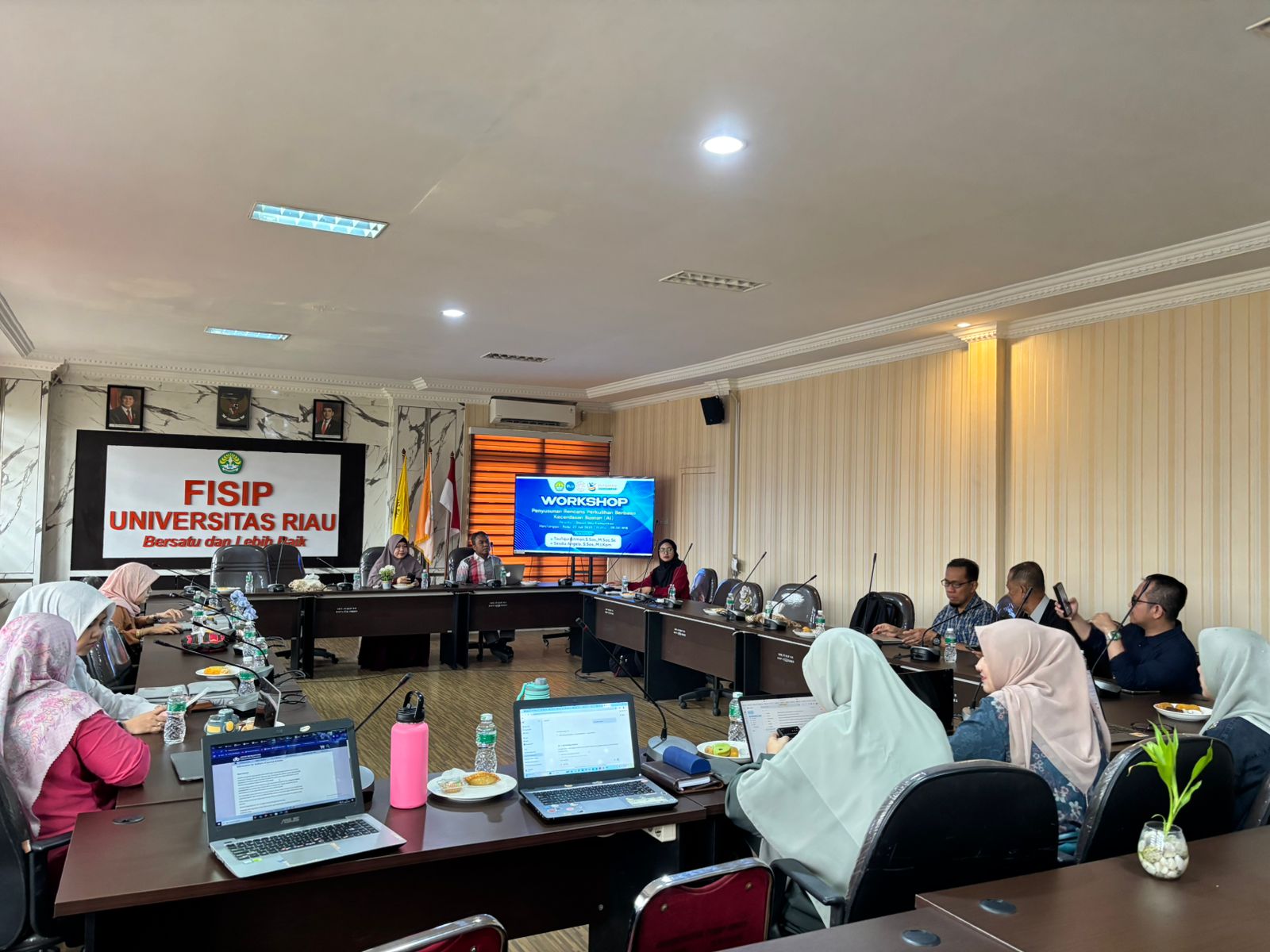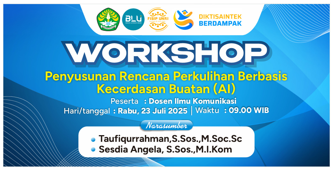 Pekanbaru, 23 Juli 2025 — Dalam rangka peningkatan kualitas pembelajaran dan adaptasi terhadap perkembangan teknologi, Jurusan Ilmu Komunikasi FISIP Universitas Riau menggelar Workshop Penyusunan Rencana Perkuliahan Berbasis Artificial Intelligence (AI). Kegiatan ini dilaksanakan pada hari Rabu, 23 Juli 2025 berlokasi di Ruang Rapat DPH FISIP Universitas Riau.