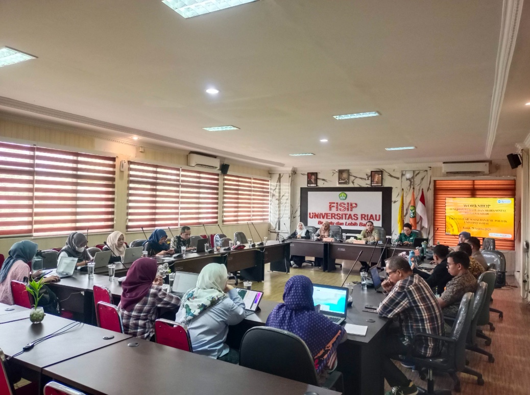 Pekanbaru, 28 Agustus 2025 — Fakultas Ilmu Sosial dan Ilmu Politik Universitas Riau (FISIP UNRI) menyelenggarakan Workshop Pengisian Website dan Media Sosial Program Studi yang bertempat di Ruang Rapat Lantai II Gedung Dekanat. Kegiatan ini dihadiri oleh Koordinator Tata Usaha, para Subkoordinator di lingkungan FISIP, serta seluruh pengelola website dan media sosial dari masing-masing jurusan dan program studi. Kehadiran para pengelola kanal digital ini menunjukkan komitmen bersama untuk memperkuat kualitas layanan informasi fakultas.