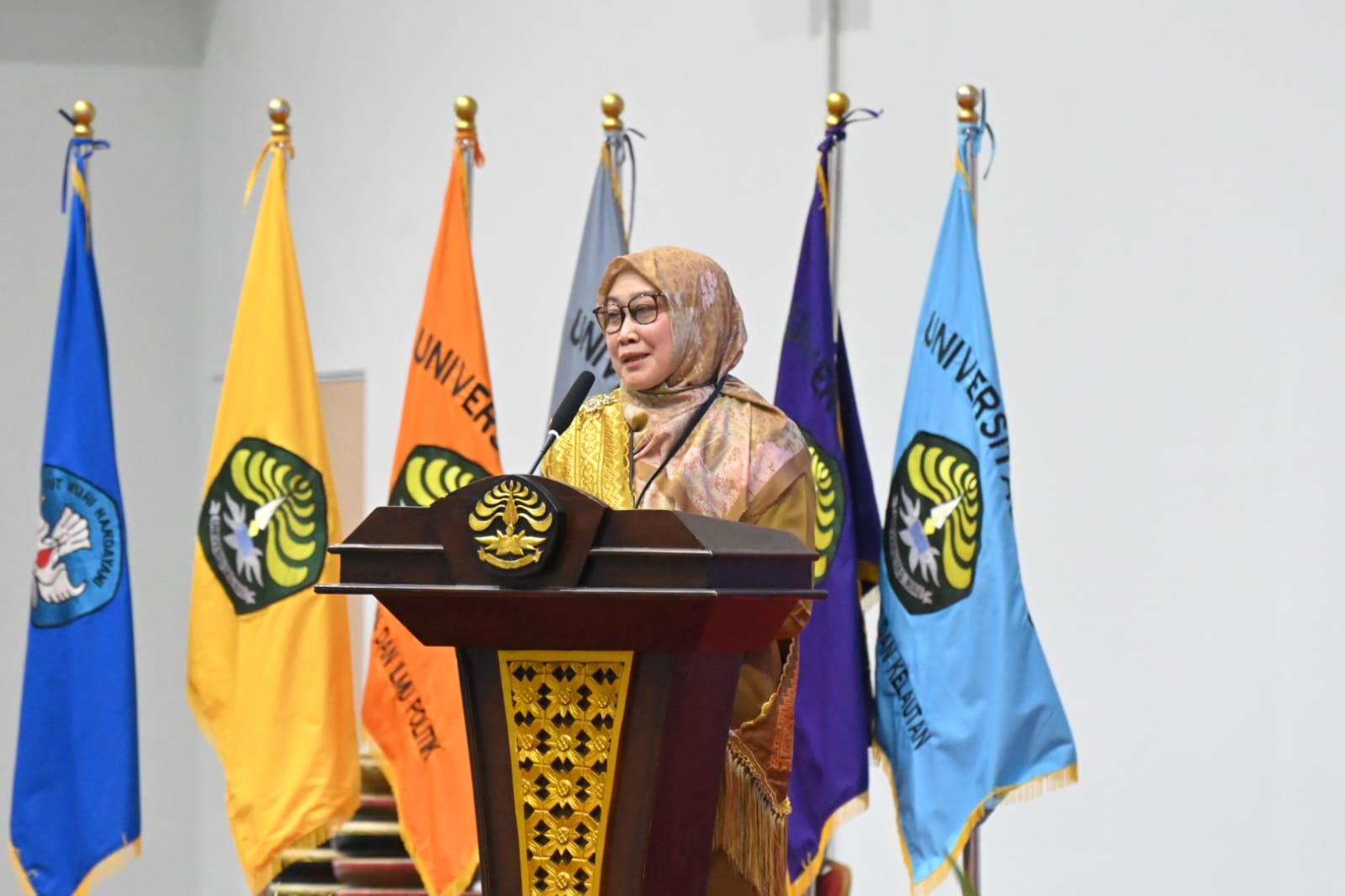 Rektor UNRI, Prof. Dr. Sri Indarti, S.E., M.Si., menyampaikan bahwa kebersamaan dan inovasi merupakan fondasi penting untuk menjawab tantangan pendidikan tinggi. Ia mengajak seluruh sivitas agar terus mengambil peran strategis melalui pendidikan, penelitian, dan pengabdian kepada masyarakat.